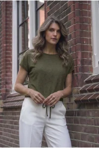 Ontdek de schitterende Top Artemis van ELVIRA CASUALS, een gouden T-shirt met korte mouwen dat perfect is voor de Nederlandse zomerdagen. Voeg een vleugje glamour toe aan je garderobe met deze stijlvolle top.