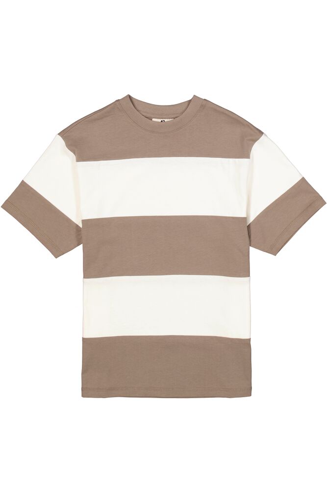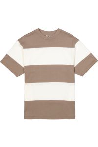 Gestreept T-shirt met rugprint. Dit T-shirt heeft een ronde hals, korte mouwen en een relaxed fit. Dit item is gemaakt van 70% katoen en 30% gerecycled katoen.
