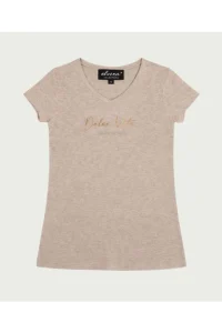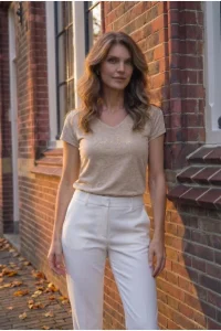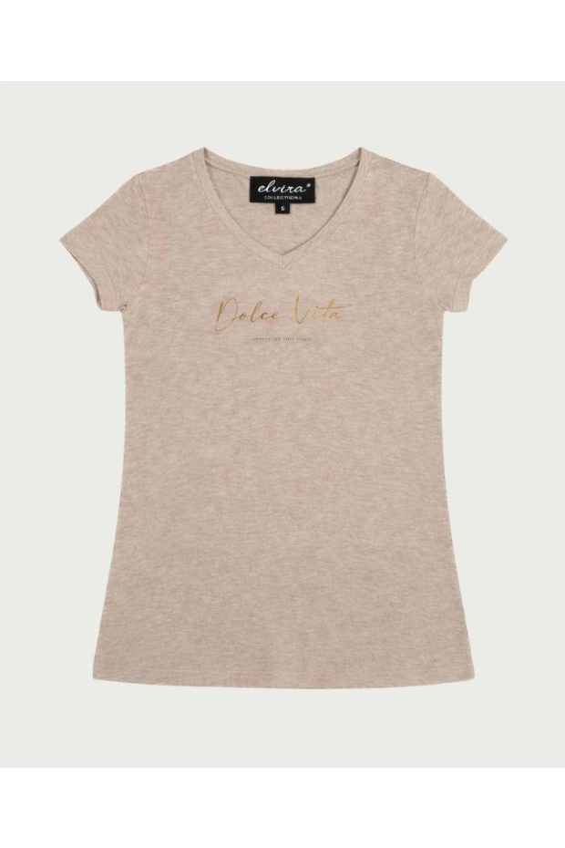 Ontdek de charme van het ELVIRA CASUALS T-shirt Dolce Vita in een elegante ecru tint. Perfect voor de Nederlandse zomerdagen, dit dames T-shirt met korte mouwen is een must-have voor elke garderobe.