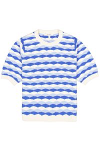 Trui met een allover patroon. Deze trui heeft een ronde hals, korte mouwen en een regular fit. Dit item is gemaakt van 100% katoen, wat zorgt voor een comfortabele en ademende draagervaring.