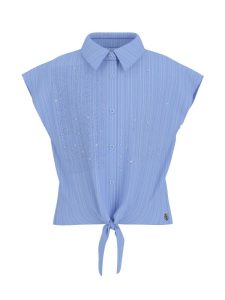 GUESS blauwe streep blouse met strass op schouders blouse.
